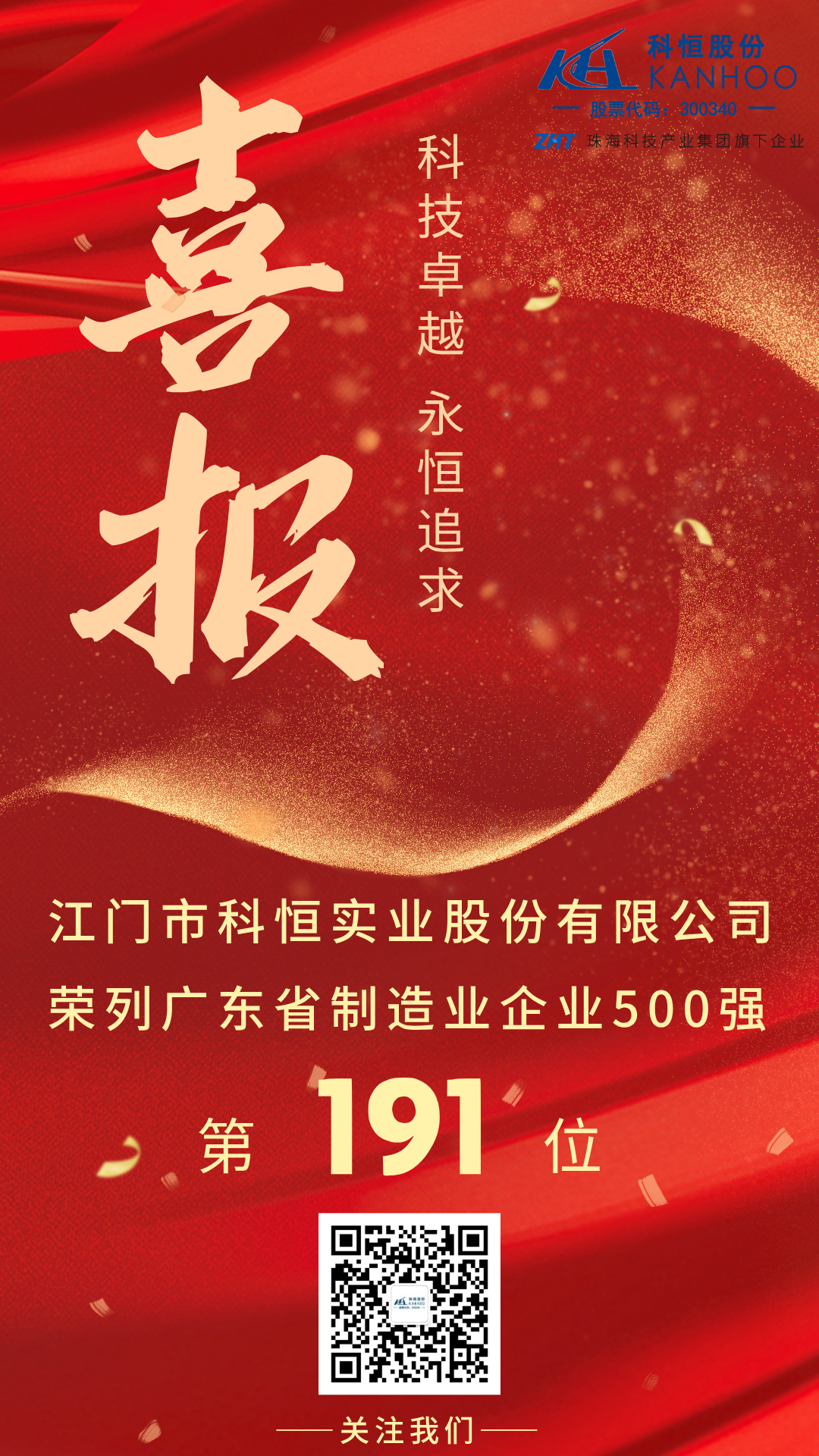 祝賀!江門市科恒實業股份有限公司入選廣東省制造業500強